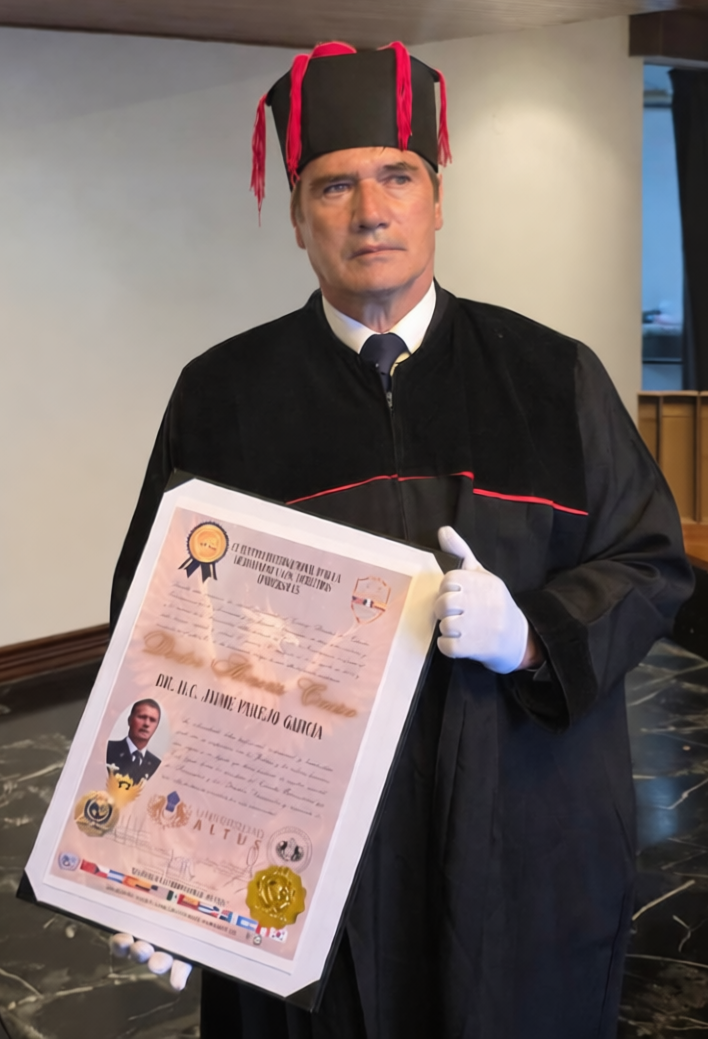 • 4) Galardonado por la prestigiosa Universidad Galileo, Guatemala, el 26 de Julio de 2019, con la Distinción Académica de mayor rango de las que puede otorgar una Institución Universitaria, el TÍTULO Y GRADO DE DOCTOR HONORIS CAUSA, por la creación del destacado avance científico y operativo Método Arcón en bien de la humanidad, siendo además primero que otorga en su historia tan importante Universidad, en lo que respecta a Ciencias de la Salud, así como también el TÍTULO DE PROFESOR EMÉRITO.